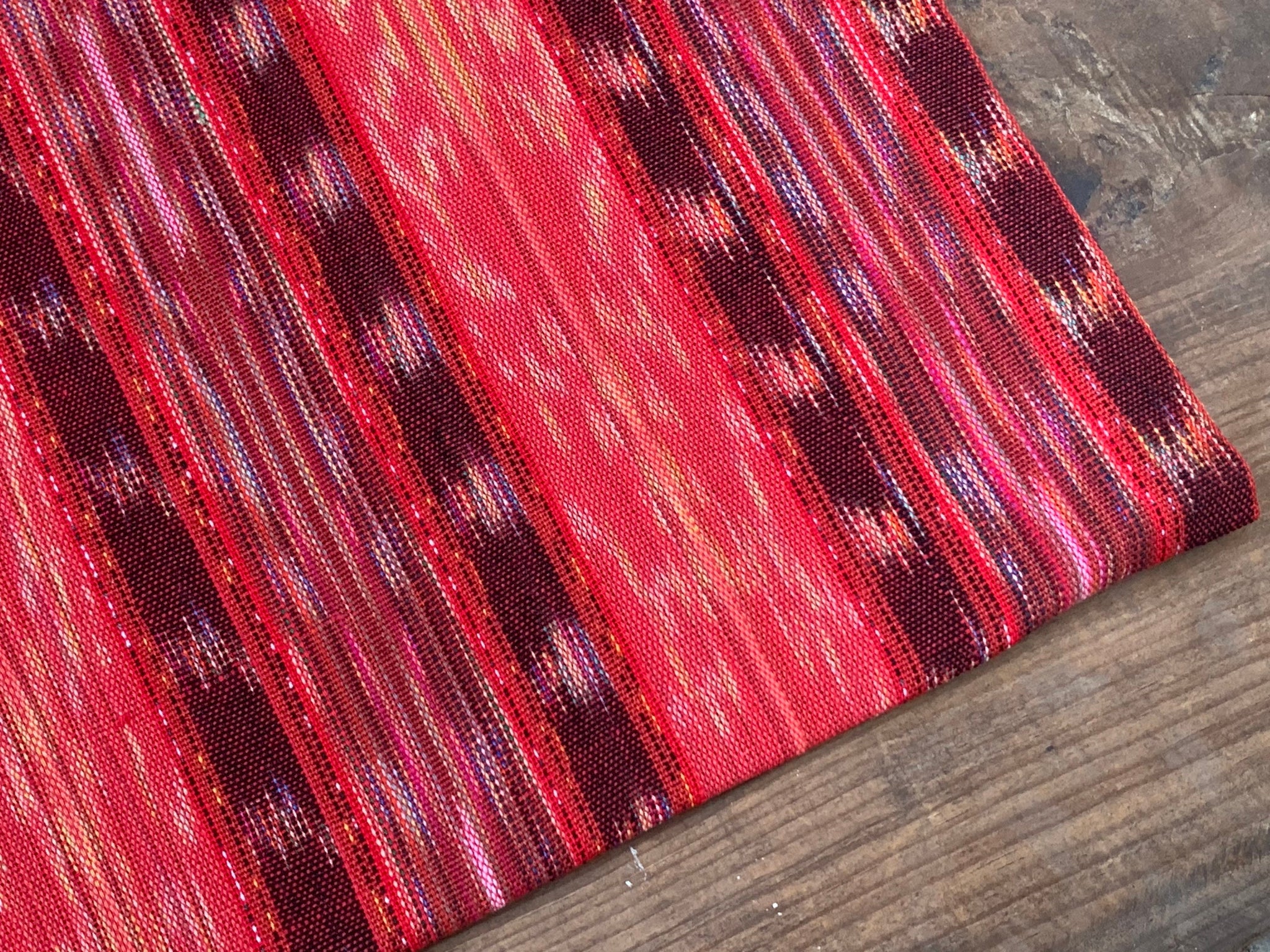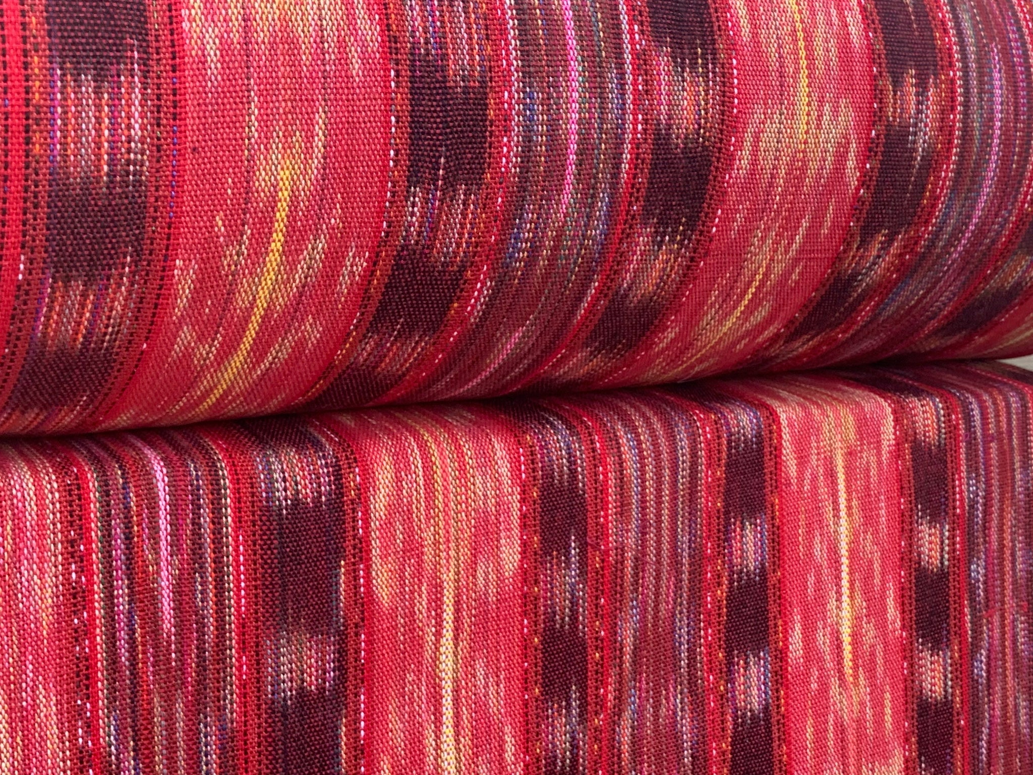Handwoven in the Guatemalan highlands by skilled Mayan artisans, our Berry Flame Ikat is a lightweight cotton fabric full of culture, vivid color, and craftsmanship. 🌈✨